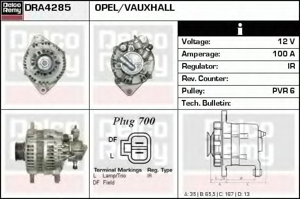 Generator / Alternator DELCO REMY DRA4285